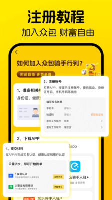 1、软件为用户提供了详细的注册教程,只需三步就能轻松完成入驻,让用户能迅速开启赚钱之旅,无需复杂的手续和漫长的等待。