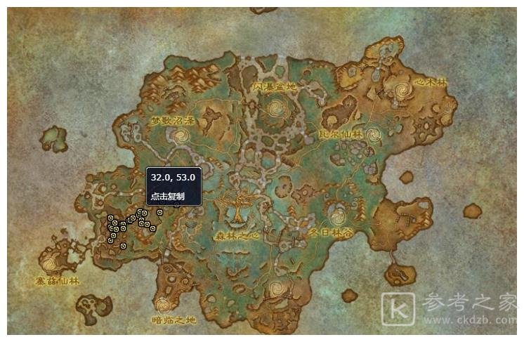 最密集的位置在炽蓝仙野的(32.0,53.0)