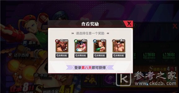 街霸对决手游中的福利是非常不错的,在连续登陆八天之后,各位玩家小伙伴可以在嘉米、毒药、达尔西姆和本田四个角色中选择一个。很多玩家小伙伴都不知道选择哪个角色的性价比更高,下面小编就为各位玩家小伙伴带来的街霸对决四选一的选择推荐吧。