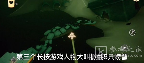 玩家在地图上找到5只螃蟹,长按人物大叫可以掀翻螃蟹