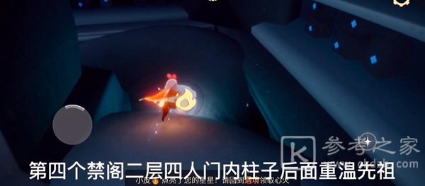 先祖在禁阁二层四人门内柱子后面,飞过去就能看到了