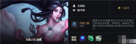 玉剑仙:当风女和协同英雄剑姬、娜美、刀妹、莫甘娜和男刀在场时,两名英雄就可以触发回复40%的法力值的机制,并随着玉剑仙的数量提升,此效果也会得到提升。