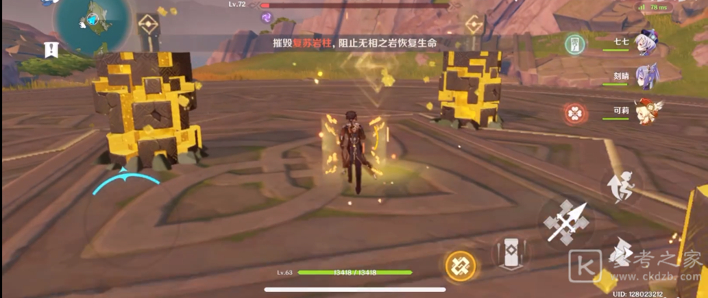 3、用雷泽砍岩盾比女仆还要慢一点,岩盾更适合岩系角色破。