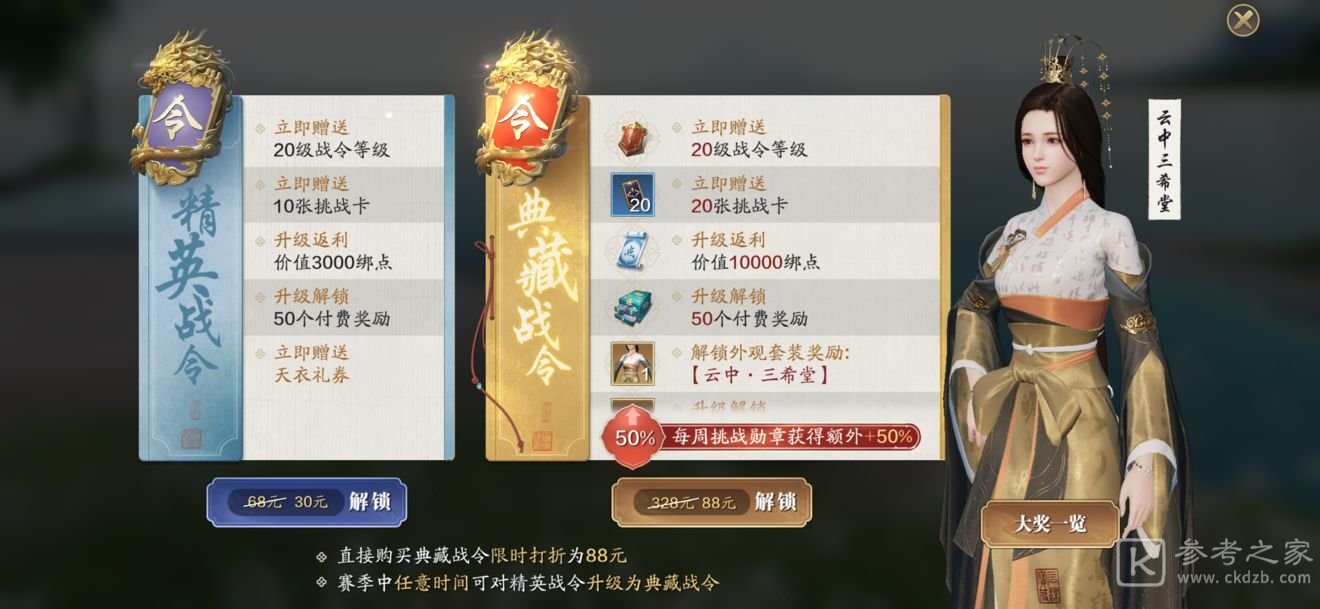 新版的天涯战令的奖励多了许多张用于抽奖的天衣礼券,但10级奖励中的天衣礼券需要少侠解锁典藏奖励