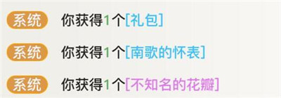 第三片:下船后吃饭后南歌给的怀表,冒险背包里点开就有花瓣了