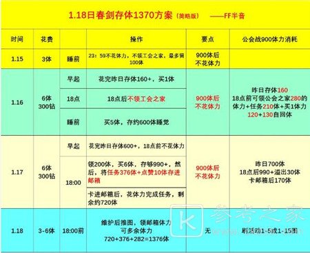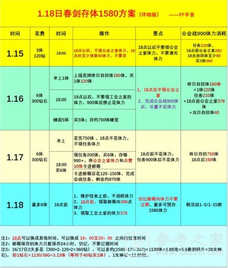 其实每日3体也可以完成春之剑圣,所以即使存体不花钻买4-6体力,也可以通过省体力等操作为春剑存体。注:这是简略版,就不整太多了,天天推算那种还是算了。