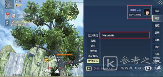 【发送坐标】点击发送坐标,可以发送旅者当前所在位置的坐标,其他旅者点开之后会出现发送者在地图上的具体位置,非常实用哦~