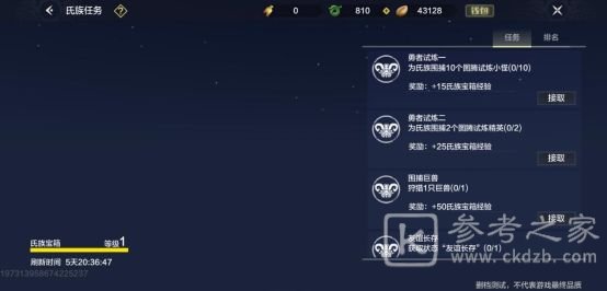 氏族任务可获得氏族宝箱经验,经验越高获得的宝箱越好,而且也会给很多的氏族贡献。氏族贡献前期的作用很大,所以尽量还是鼓励氏族成员多参加一些氏族活动。氏族活动一般都比较简单,可以鼓励氏族成员上线之后先接氏族任务,可以在做日常时一起完成。