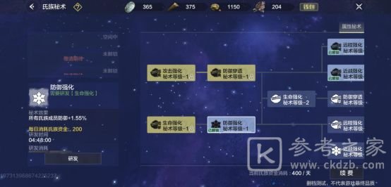 研发秘术需要物资,所以前期的话可以让氏族成员多多捐献物资,研发之后可以获得不等的属性,以及攻击加1%。这些可以帮助氏族成员增加战力,但是一旦有成员退出氏族后,他将不享有这些加成。