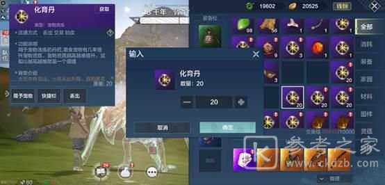 4:给宠物喂食识聪丹(立刻获得5000灵气)或通慧丹(立刻获得10000灵气)