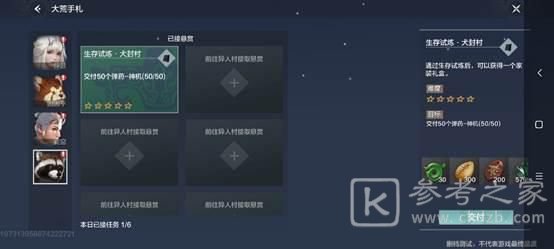 接取之后在【大荒手札】最下面可以看到和交付悬赏任务。