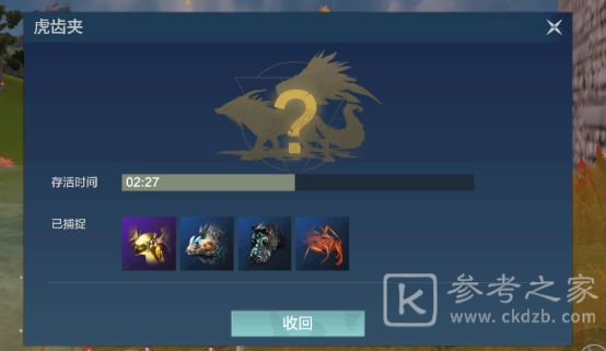 当虎齿夹被填满后,旅者就可以将其收回了!当然如果不想继续放置了,也可以强行提前收回哦~所有被虎齿夹捕获的物品会在回收的时候进入背包。因此千万不要忘记收回它!