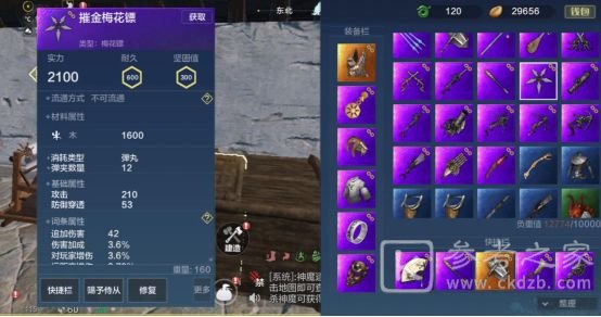 元戎弩适合中近距离作战,虽然单发伤害不高,但是有着高容量的弹夹以及高射速,可以造成较高的持续伤害。梅花镖;