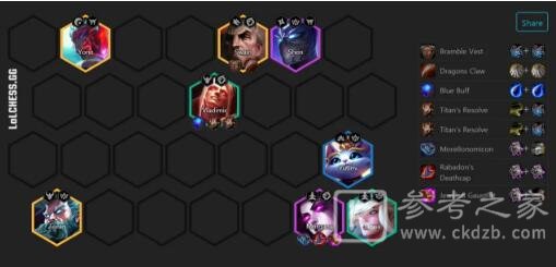 如果觉得自己场上英雄质量和伤害可以的话,可以选择拿奥恩来补充后期的装备和阵容上限。否则可以考虑拿2星的劲夫和2星莎弥拉来弥补伤害。