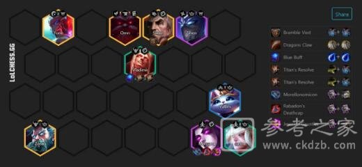总而言之后期拉9人口,看对面阵容来选择用什么英雄来C。如果质量够的情况下选择奥恩来提高阵容上限还是一个非常不错的选择的!