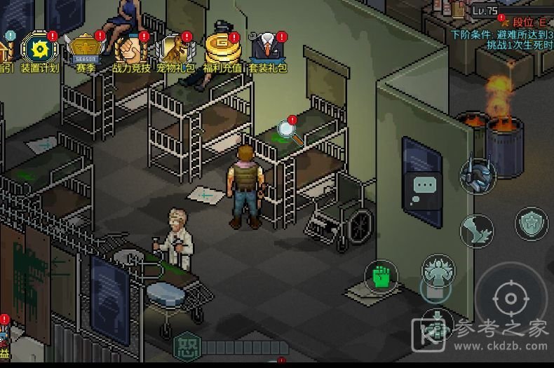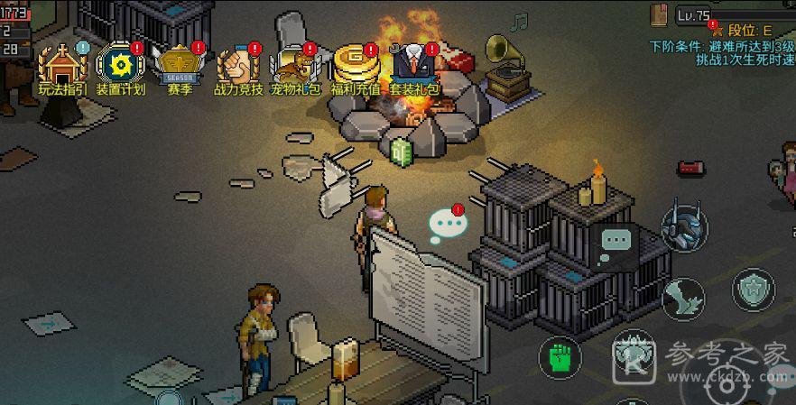 然后回到标着“像素危城”大字的沦陷区地图,它的旁边是邮箱,再往旁边的摩托车,就是进入各种难度关卡的本体了,升级可以增加可以快速探索的次数。